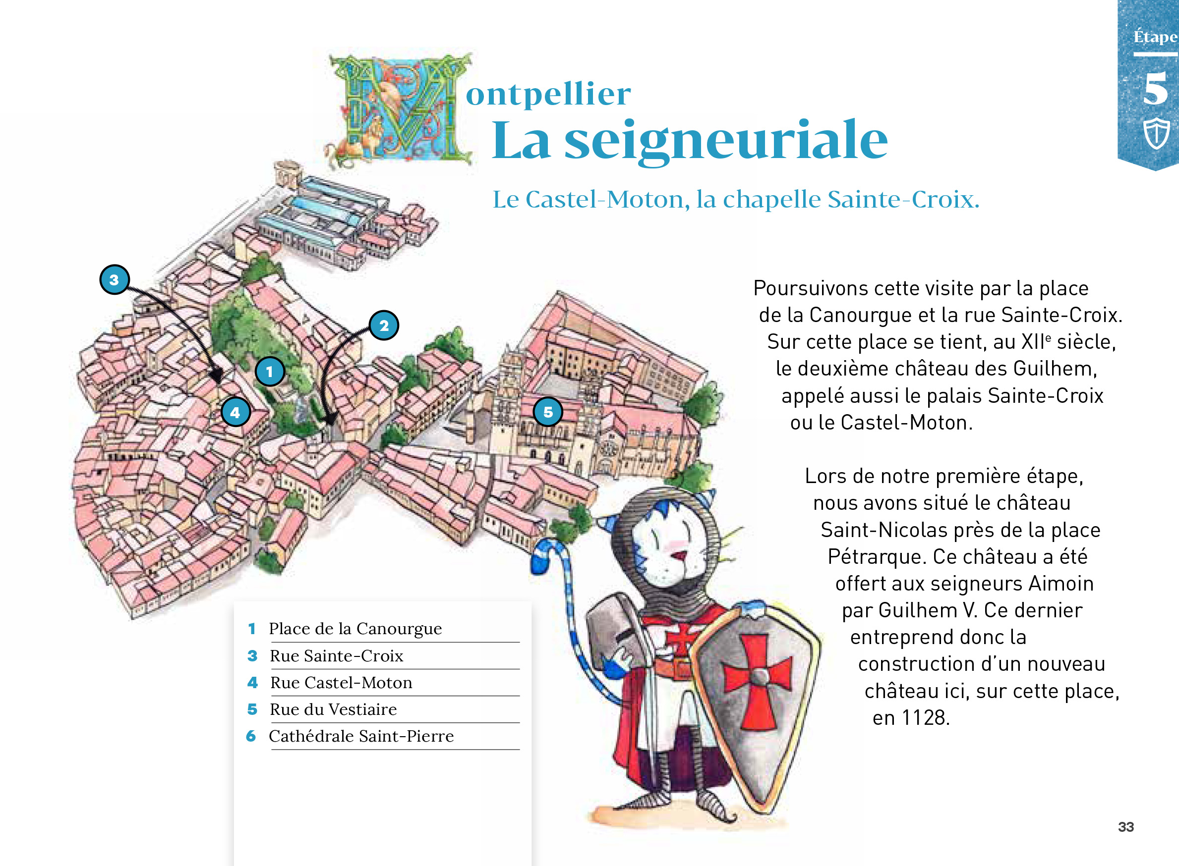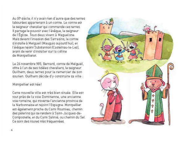Un parcours ludo-éducatif, imaginé par Julie Marchand, à destination d’un jeune public désireux de connaître l’histoire de la ville de Montpellier, de la naissance de la cité jusqu’à son rattachement à la France de Philippe VI de Valois. Cette déambulation dans les rues étroites de Montpellier est accompagnée par un personnage haut en rayures, Guilhem, un chat imaginé par Sophie Schreurs, aux couleurs de la Ville, qui amusera les lecteurs de 7 à 77 ans.